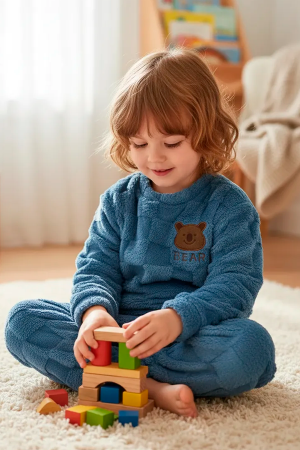 Pijama Conjunto Polar Peluchito Niños Invierno Azul